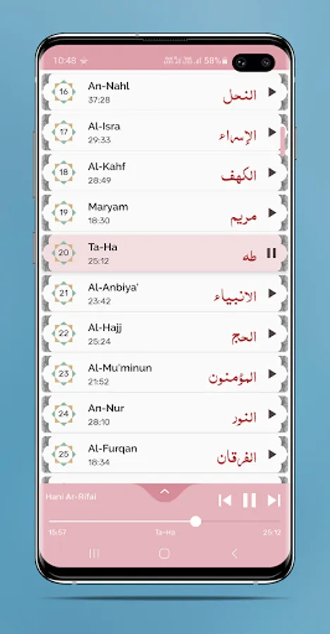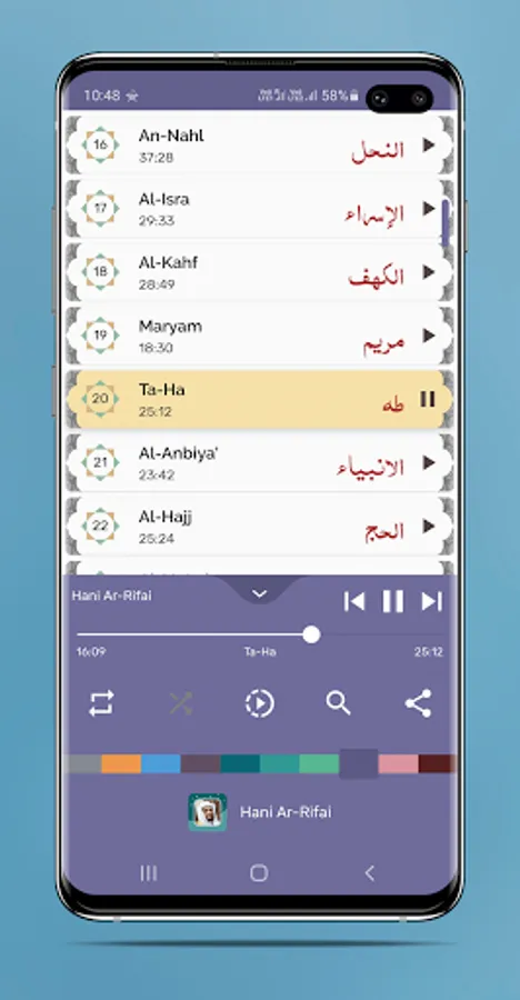 Mp3 file will be play and you can listen Holy Quran for long time by Hani Ar Rifai.