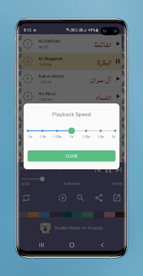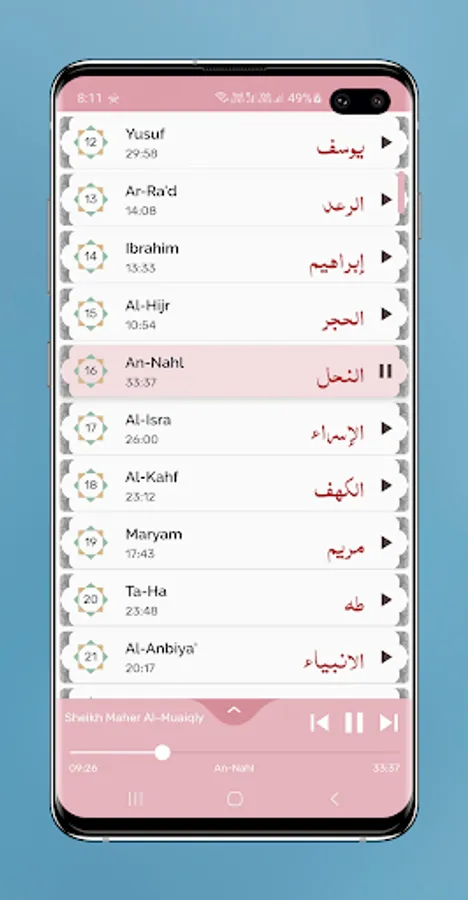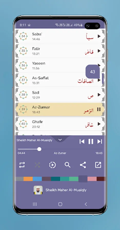 Full mp3 quran for listen by reciter Sheikh Maher Al-Muaiqly. Just open the Quran and tap any surah to play in high quality.
