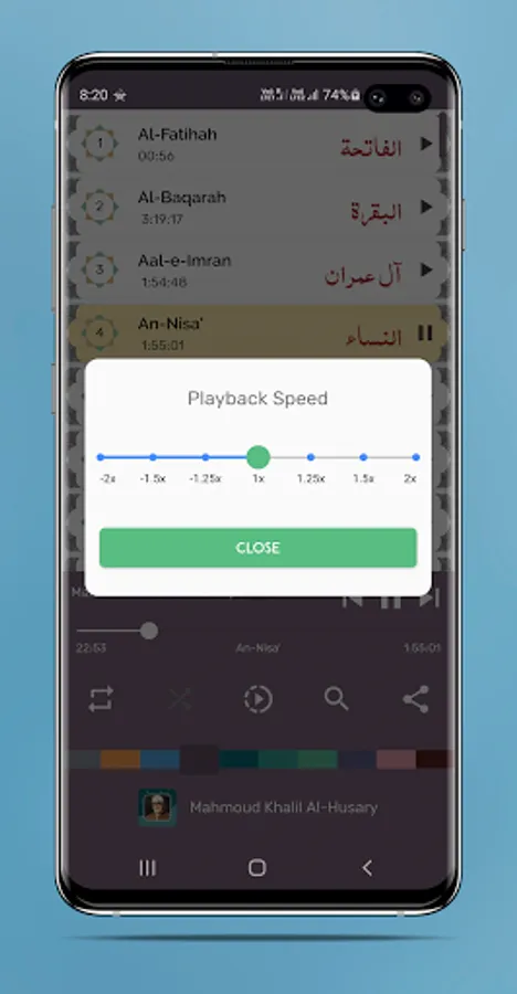 Every Surah will be played back to back automatically. Don't need to tab again and again on every Surah.