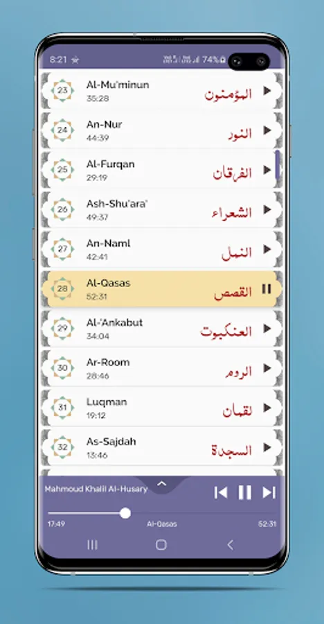 Listen Quran offline without any internet connection. Just open the Quran and tap any surah to play in high quality.