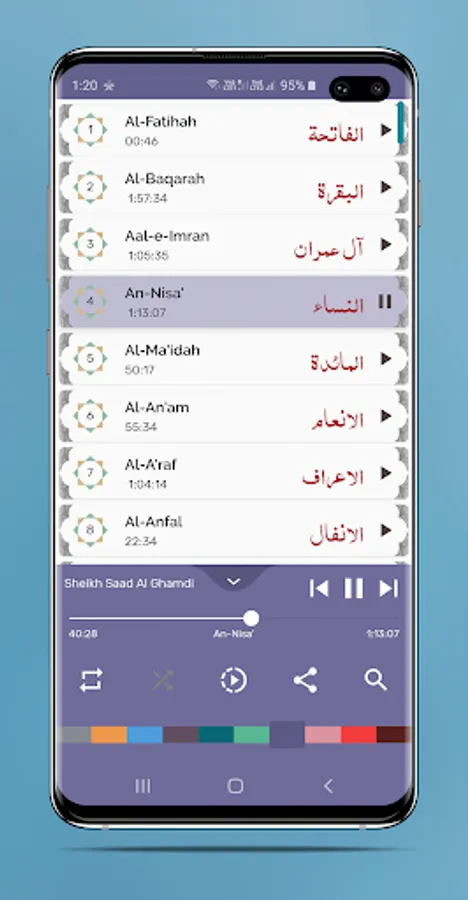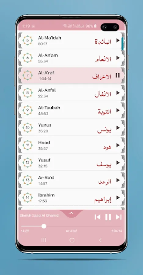 Mp3 file will be play and you can listen Holy Quran for long time by Saad Al Ghamdi.