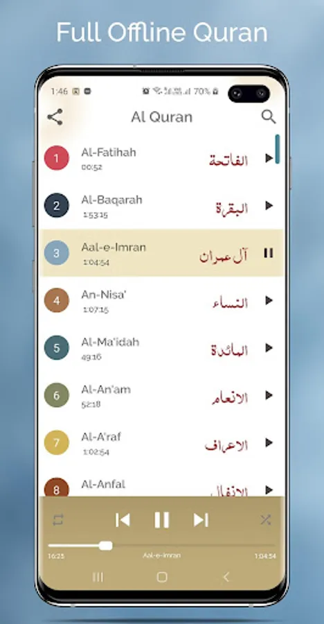 - Every Surah in this Quran mp3 app will be played back to back automatically