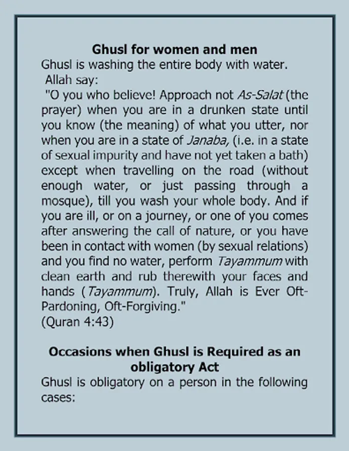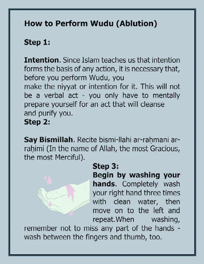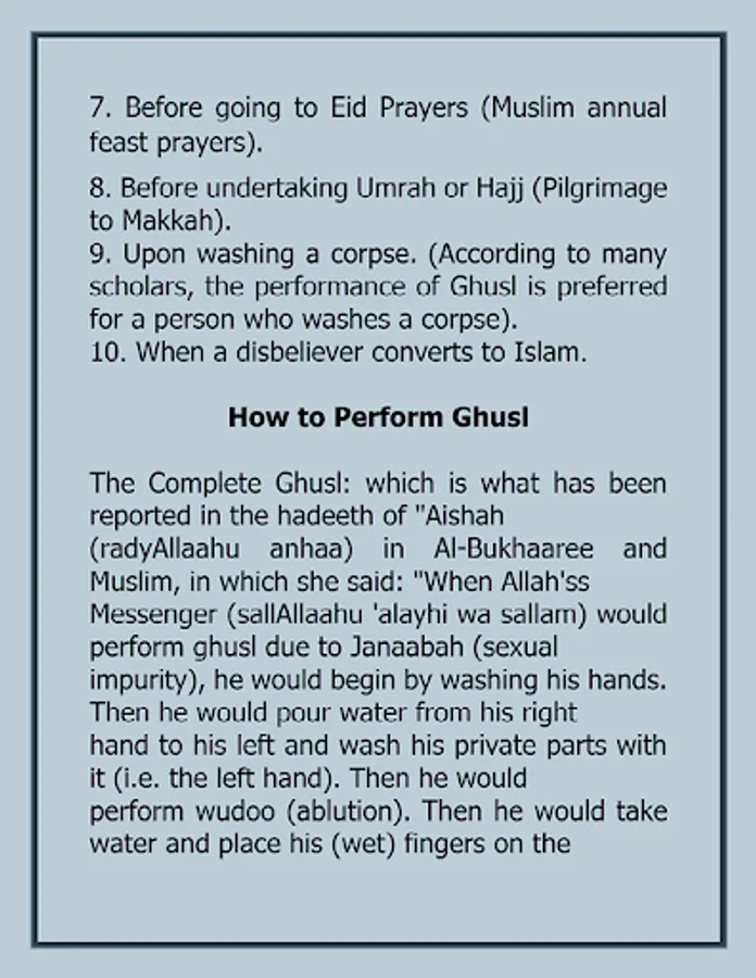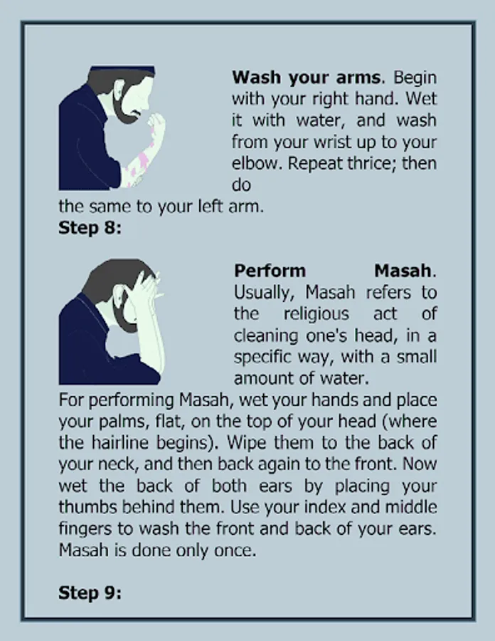 This app contains a complete step-by-step procedure of Ablution Ghusl and Tayammum according to sunnah.