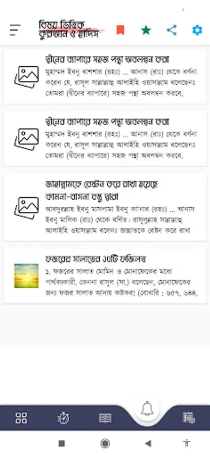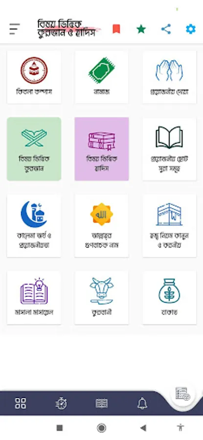 Bishoy vittik quran o Hadith is the biggest collection of selected quran and hadith. There are almost Then Thousand ayat and five thousand hadith in this collection. All the parts are divided by topic based. So it’s really easy to find the specific topic hadith and quran.