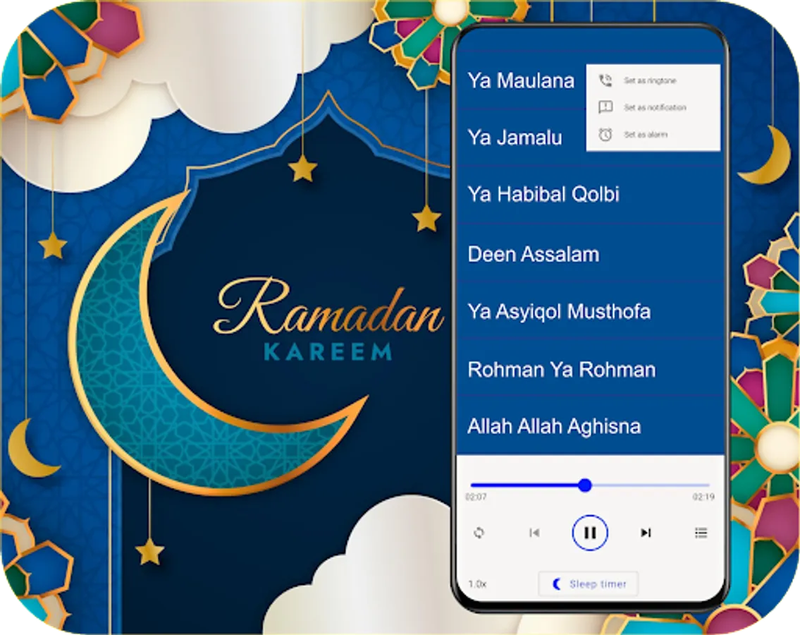 + Set timer to play sounds & Islamic religious songs as Alarm.