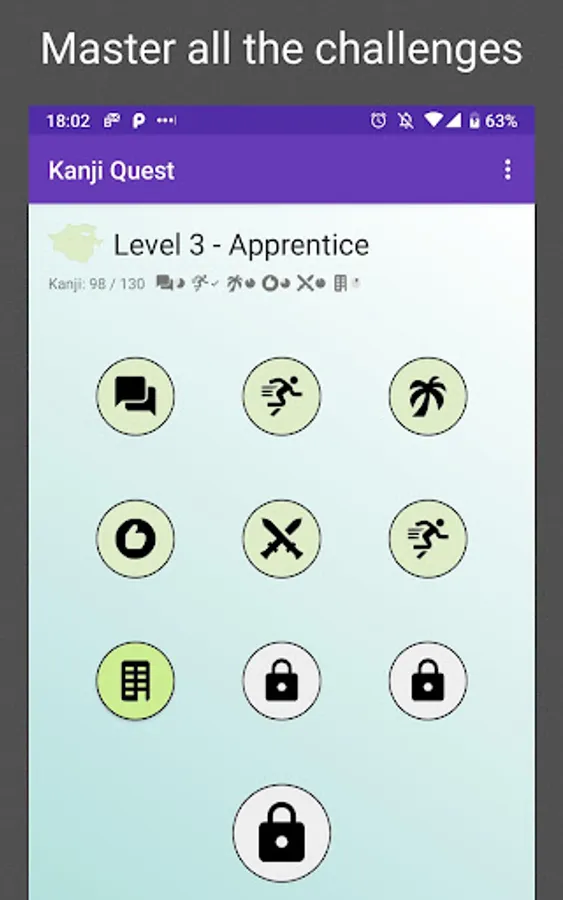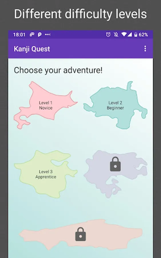 Choose an adventure and practice with almost 700 different Japanese Kanji. You can use this game for JLPT practice and training - all JLPT Kanji from N5 to N3.