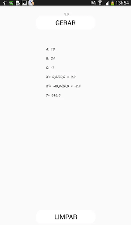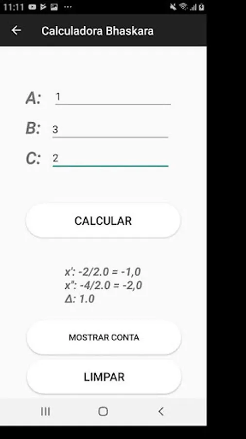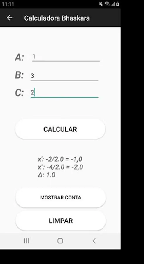 It is also a Bhaskara calculator, where you enter the coefficients and it performs the account for you, having as one of the features, show the construction of the account.
