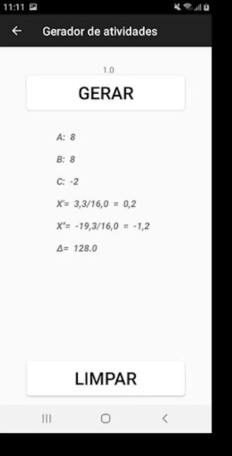 Bhaskarator is a tool that generates Bhaskara activities where it shows the results and coefficients a, b and c.