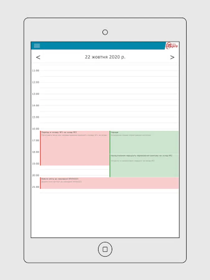 • a detailed list of tasks for the day with a display of execution time and a description of tasks;