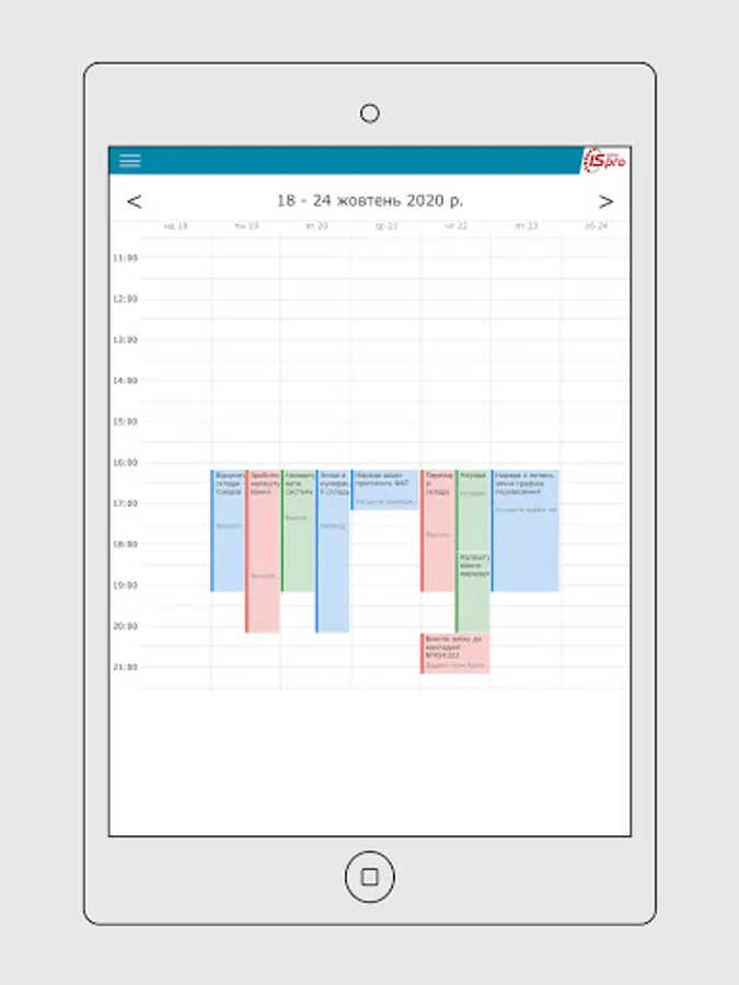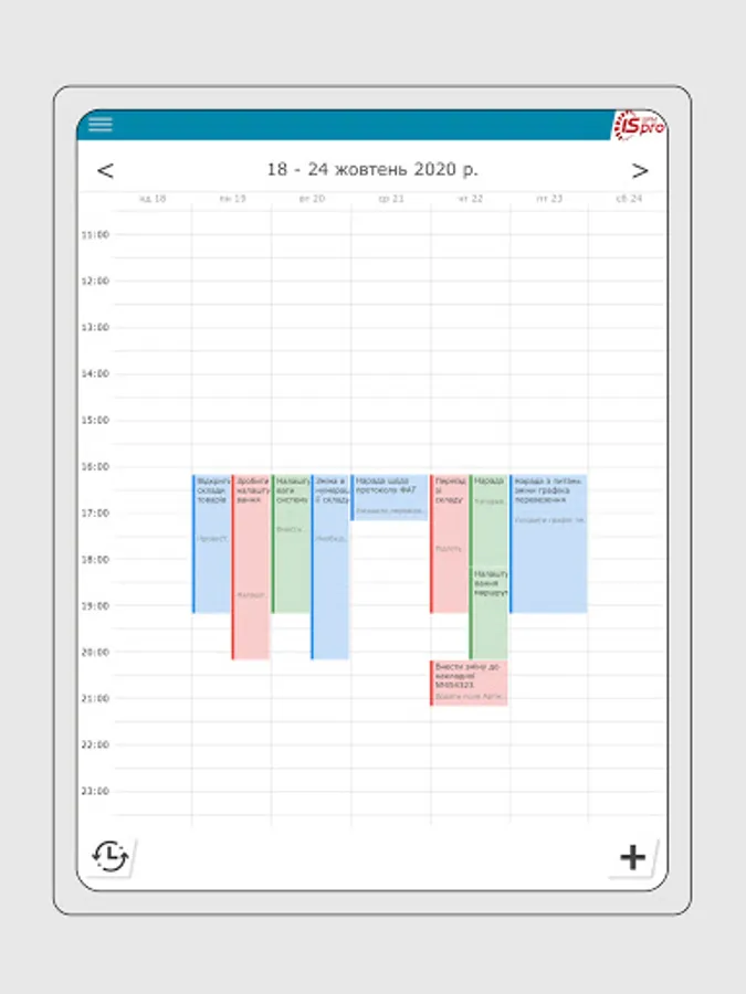 • list of tasks for the week with indication of the day of the week, time of execution and description of tasks;