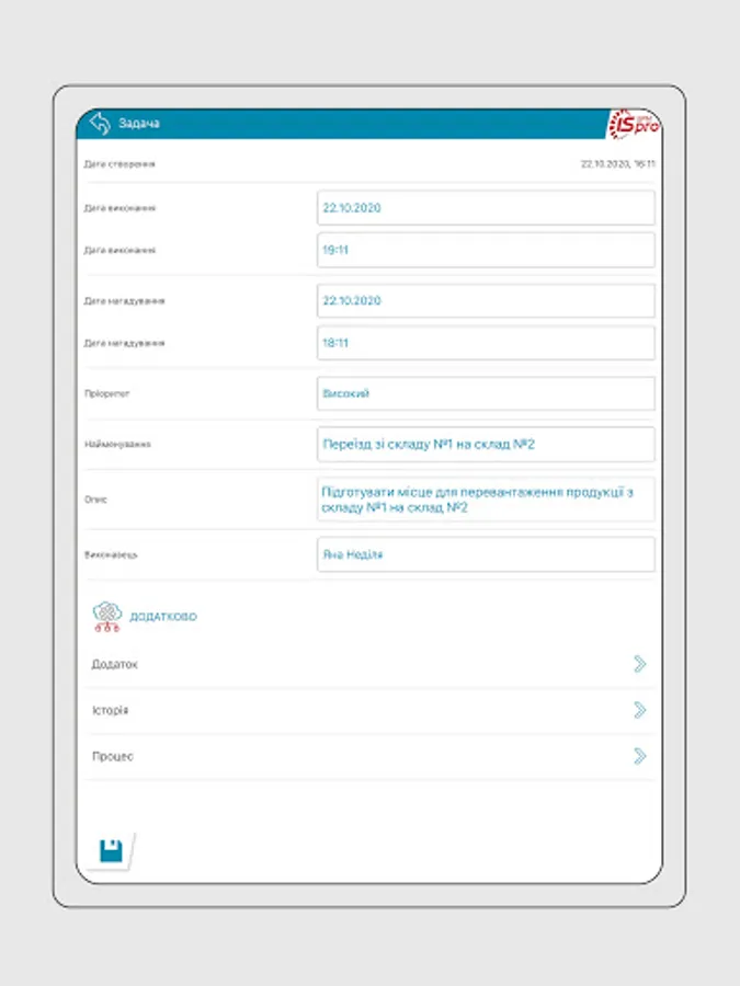 ISpro: BPM application is implemented to ensure efficient work with task lists, their distribution and scheduling. The application contains a set of functions that cover the implementation and control of tasks of any variety and complexity.