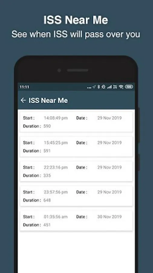 - Spot the Space Station - Find when the ISS will pass over your home. You can set alert and app will notify few min before its passing by