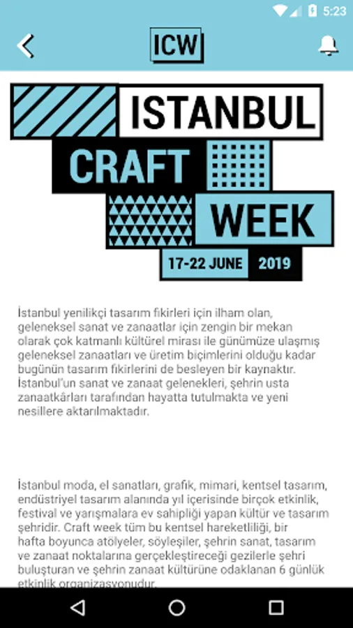 Istanbul is a city of culture and design that hosts many events, festivals and contests in the fields of fashion, crafts, graphics, architecture, urban design, industrial design. Craft week is a 6-day event organization that combines all this urban mobility with workshops, interviews, trips to the city's art, design and craft spots for a week and focuses on the city's craft culture.