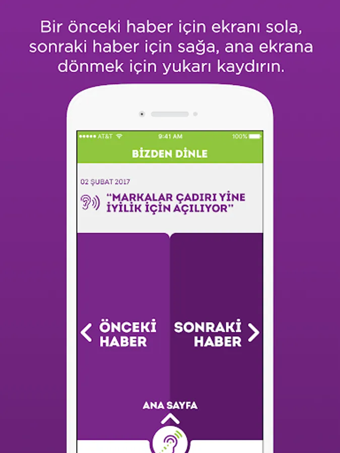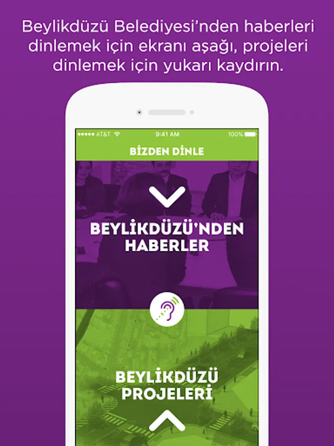 Listen to us, Beylikdüzü Municipality news for municipalities that prepare for sight impaired people and projects is a mobile application where you can listen to the most current version. The aim of this project is convenient access to every citizen of the latest news and projects. easily available and easy to use interface of the app with voice guidance, it can easily navigate between news and projects. Audible alerts the user meets with the opening of the application and provide information on how to use the application. also given an audible and visual warnings for handouts during navigation.