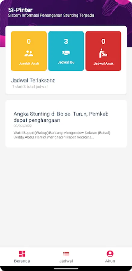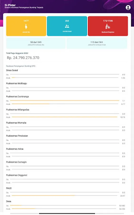 This application is used by Target Households to find information and schedule health service checks to prevent stunting in pregnant women and children from an early age