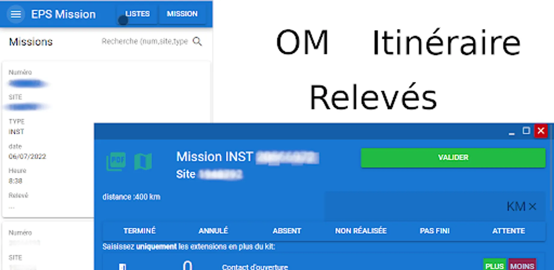 View the information of your mission orders, in a simple interface. Management of mission data, route, mileage, and extension. Features: Retrieval (/visualization) of mission orders, pre-calculation of distance, and route to subscriber via Goole Map or Waze, management of mission states, statement of extensions, statement of kilometers, summary on demand or end of month of missions carried out.