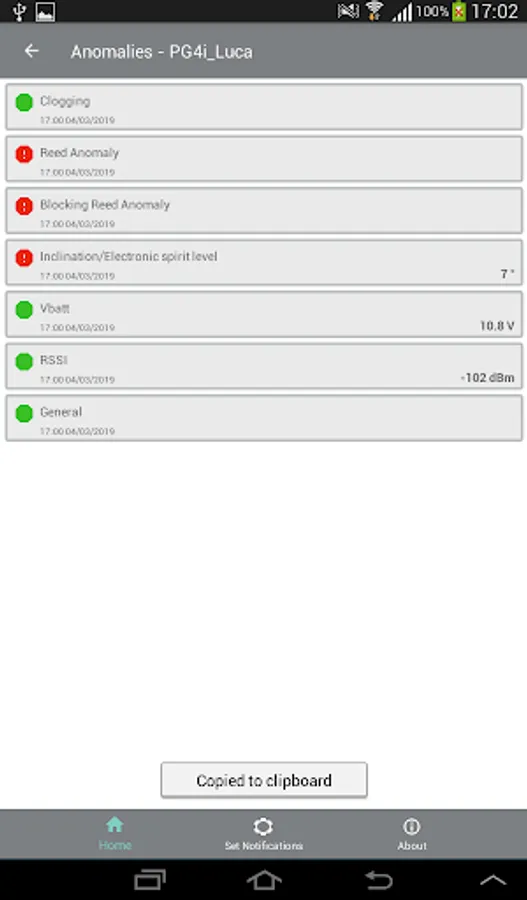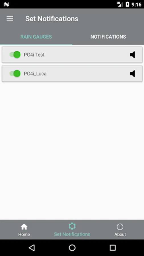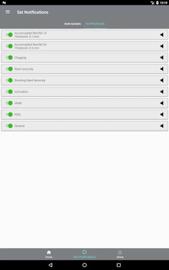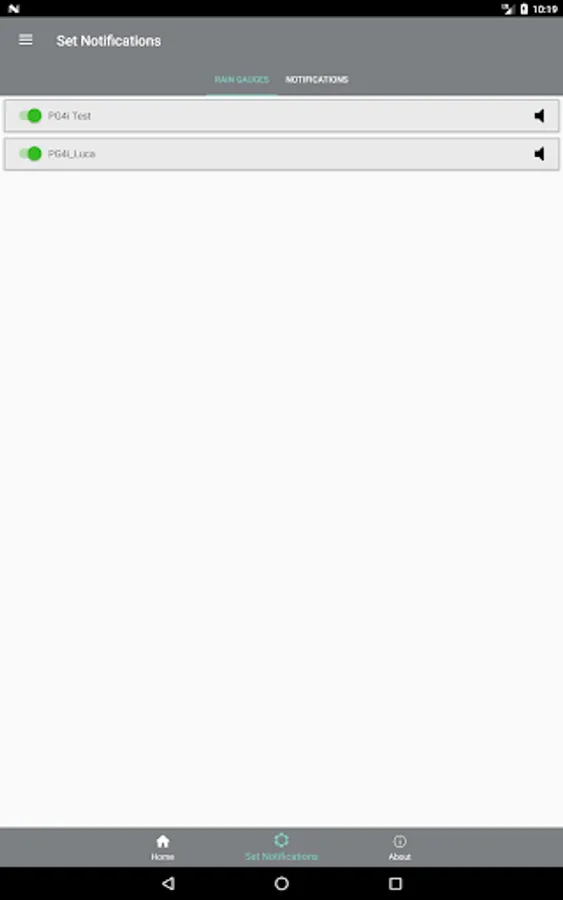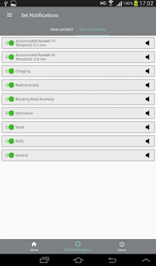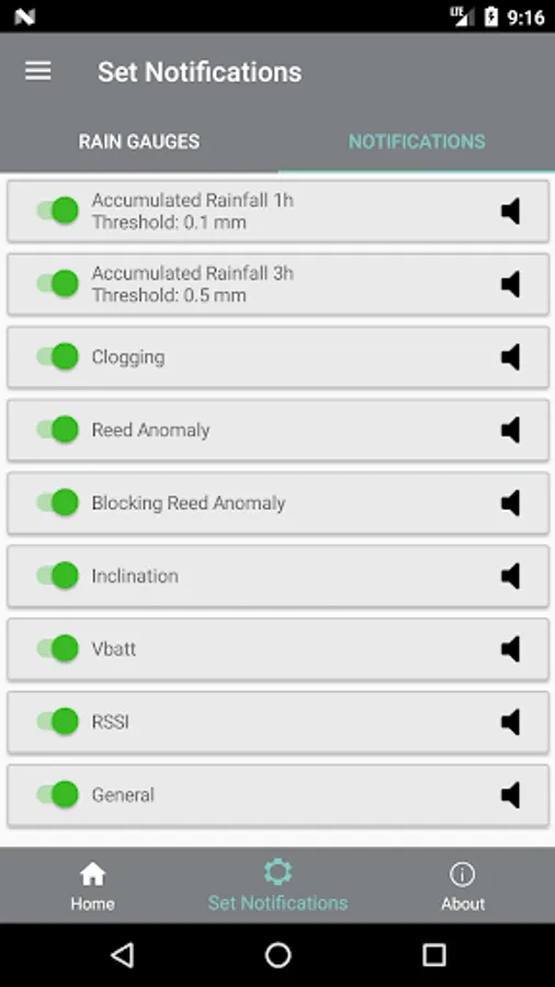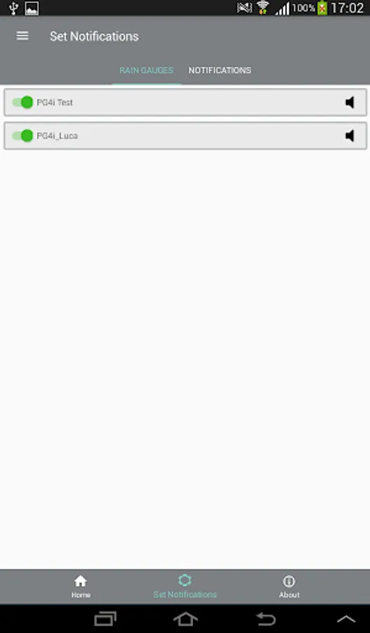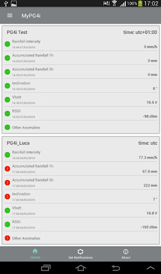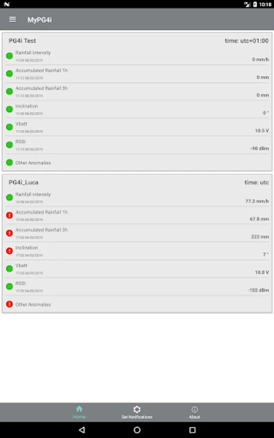 MyPG4i allows you to receive push notifications to inform you of the rain events, exceeding the thresholds set on the accumulated rainfall, at 1 and 3 hours, and any malfunctions reported by the diagnostic sensors. You can activate and deactivate push notifications in relation to each rain gauge or notification type, permanently or only for limited periods of time.