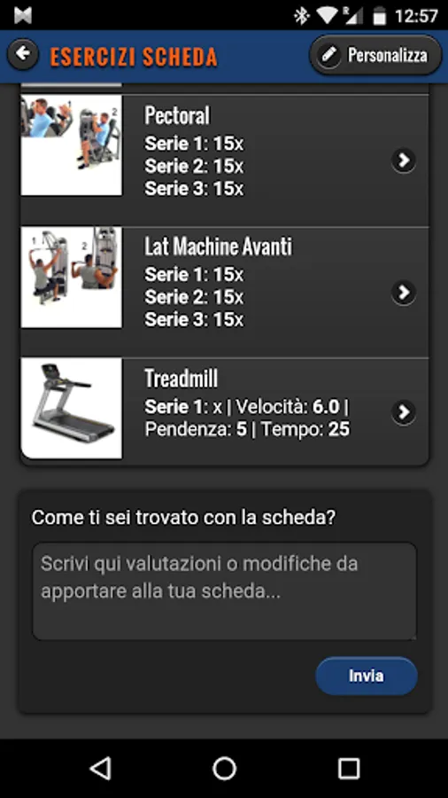 App tabs workout created by your instructor gym My Club