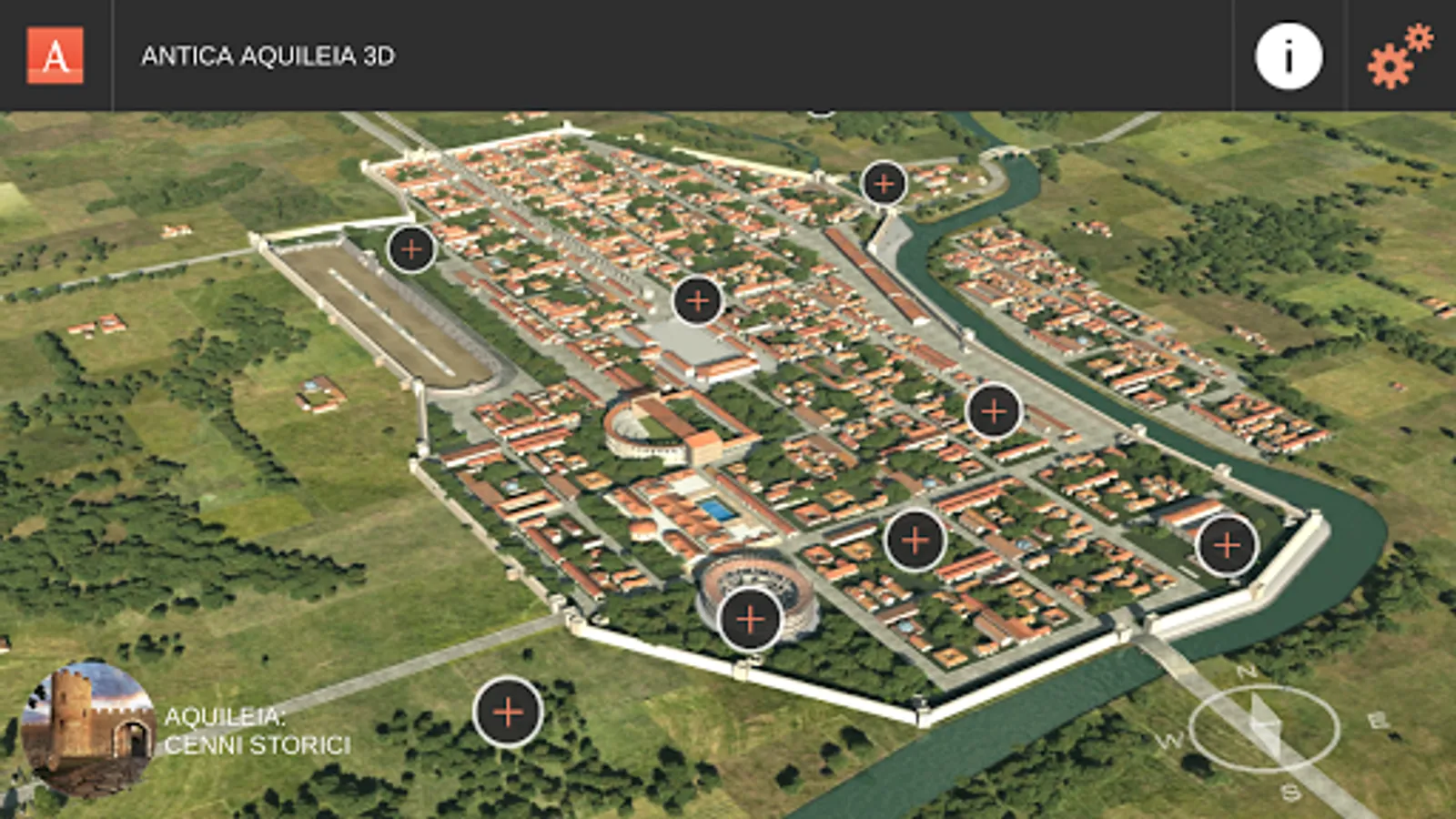 The application, created by Aquileia Foundation to spread knowledge of the archaeological heritage of the city, a UNESCO site since 1998, it contains: