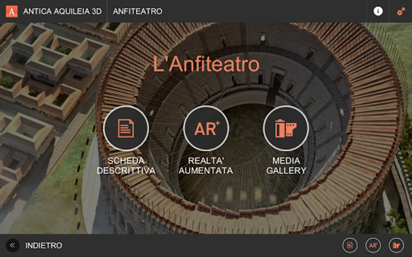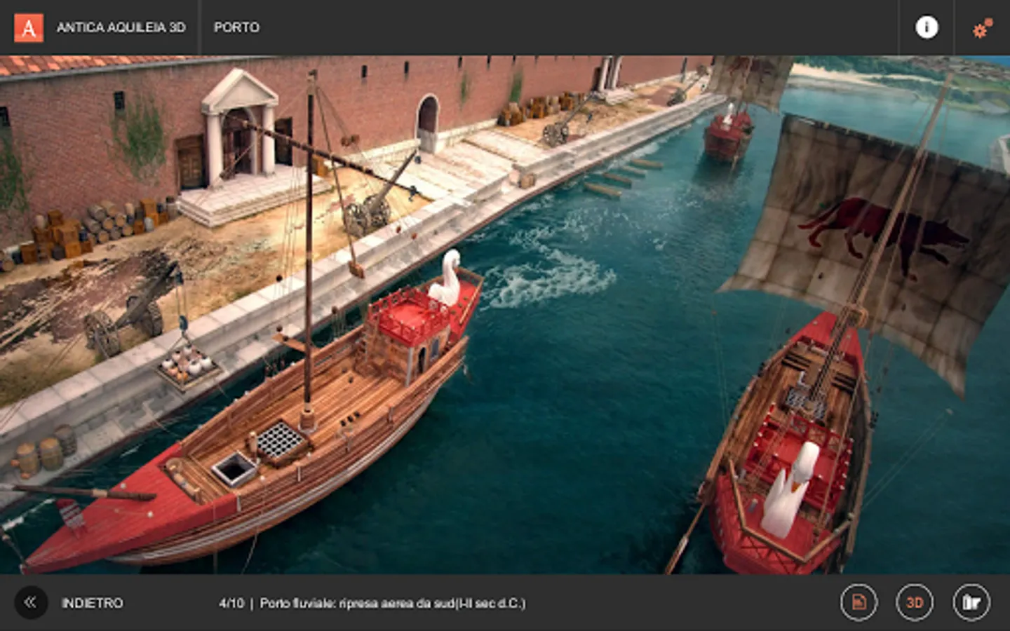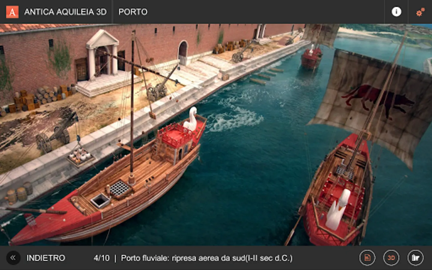 "Old Aquileia 3D" combines virtual reconstructions, video and interactive explorations of the main monuments, allowing visitors to use their device as a "time window" and as an interactive video guide.