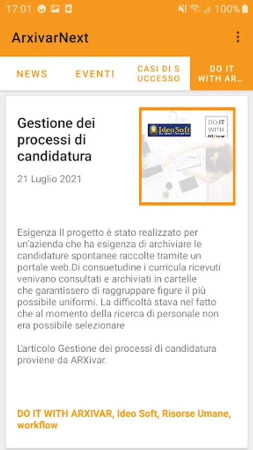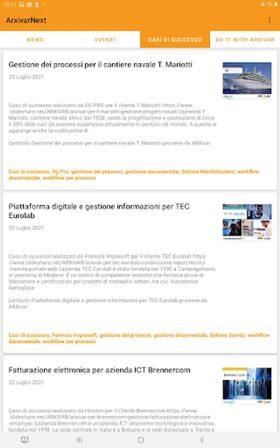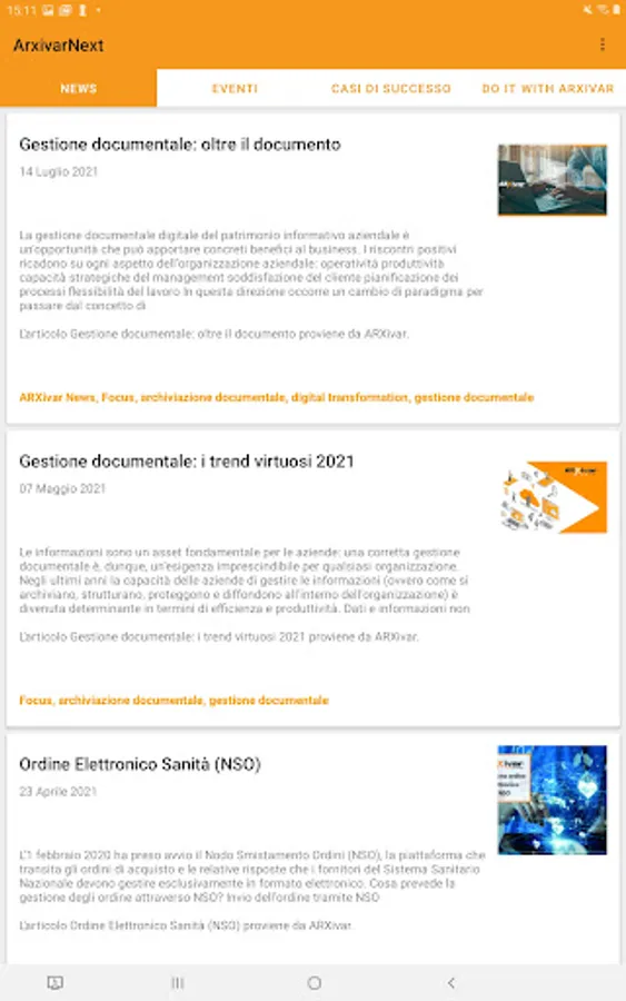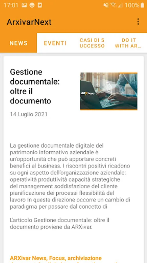 - NEWS section: updates from the community of ARXivar partners and focus on regulatory news regarding document management and business processes