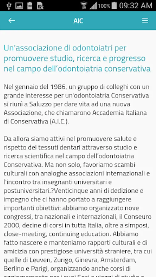 Italian Academy of Conservative Dentistry (AIC) is an association of dentists that promotes knowledge, awareness, research and innovation in conservative dentistry. You can find information about events, courses and conferences organized by the association.
