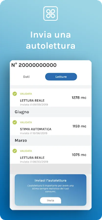MyAcea Acqua is the App that allows you to manage your Acea Ato2, Acea Ato5 and Acea Molise domestic water users in complete autonomy and safety, from the comfort of your smartphone, wherever you are.