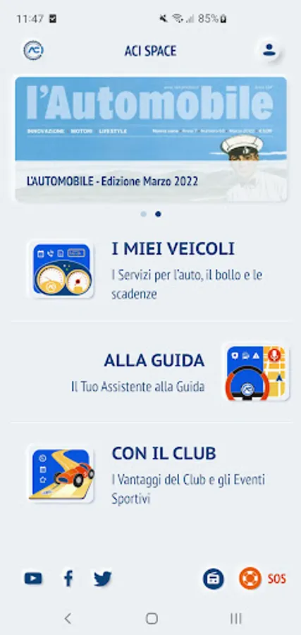 With ACI SPACE, in case of need, you can call ACI help for the car, the house and the doctor. You can find out all the discounts for ACI Members, where to do car procedures and where to park. You can also find the nearest gas station and check fuel prices. Find the catalog of ACI cards and if you are a member you always have your card at hand with all the services reserved for you. Type in the license plate of a vehicle and find out a lot of information. If you register you will also be able to see the vehicles in your possession with the tax status (stamps from recent years) and administrative documentation (digital ownership certificate with any restrictions and annotations). You can listen to the ACI radio and if you are a fan you can explore the world of motorsport and hit the track with your car.