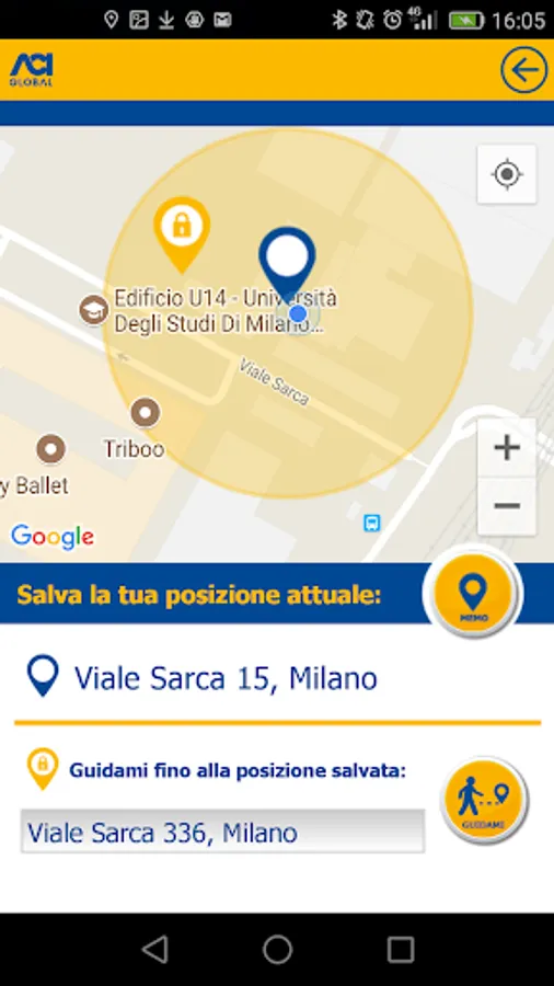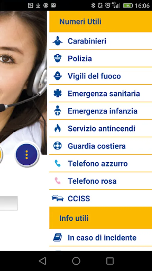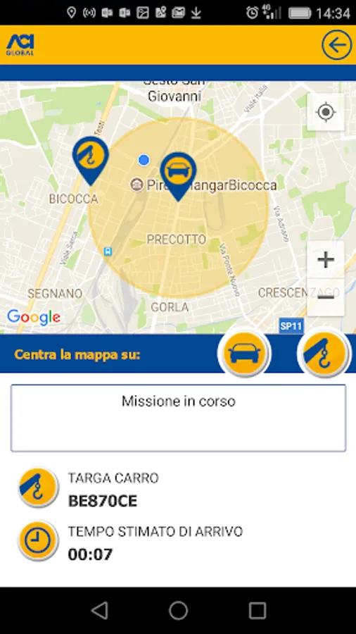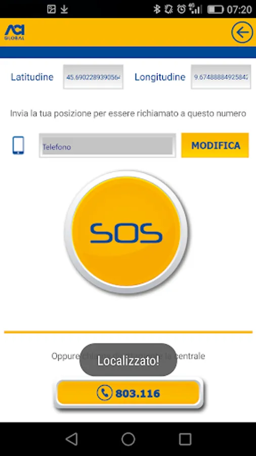 The free application developed by ACI Global i803116 today new graphics and allows the user to make a request for assistance to the central ACI, through the use of their mobile device. The request is sent using a data connection.