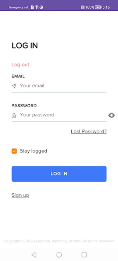 Once installed the App, you will see the welcome page and this confirms to you the application is correctly installed on your device.