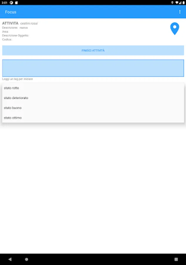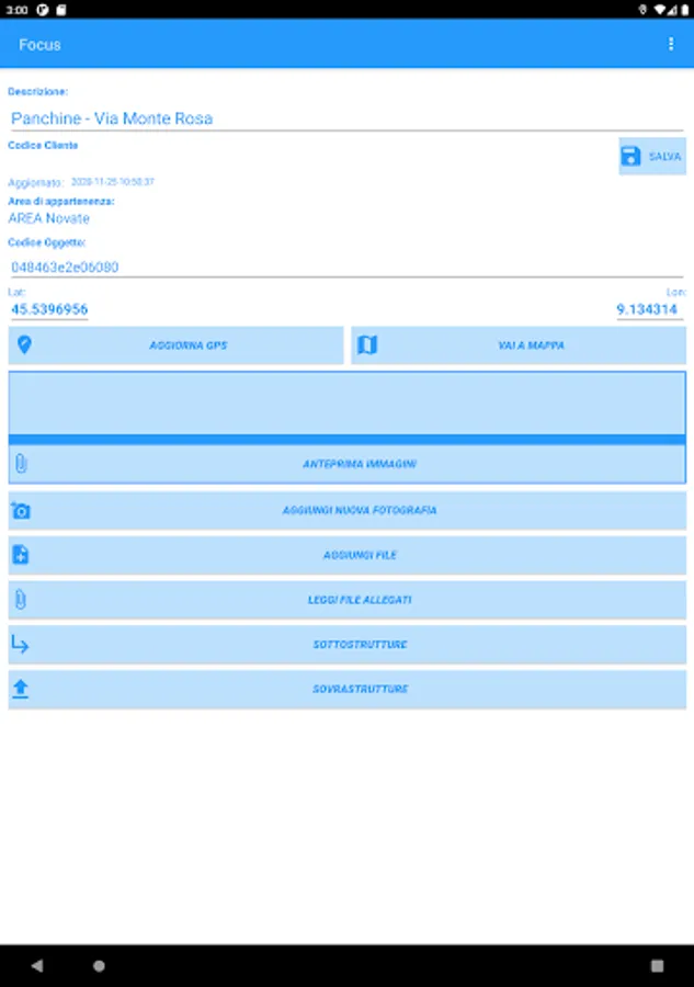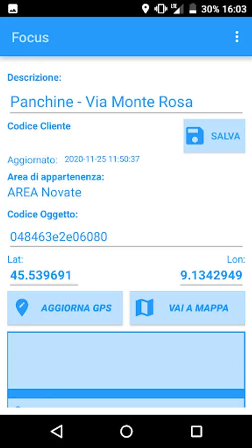 Focus allows you to track any type of activity on any Point of Interest, such as green areas, bins, offices, homes, meters, boilers. At the same time this software allows you to control the activities carried out on each Pol, geo-locating your staff.