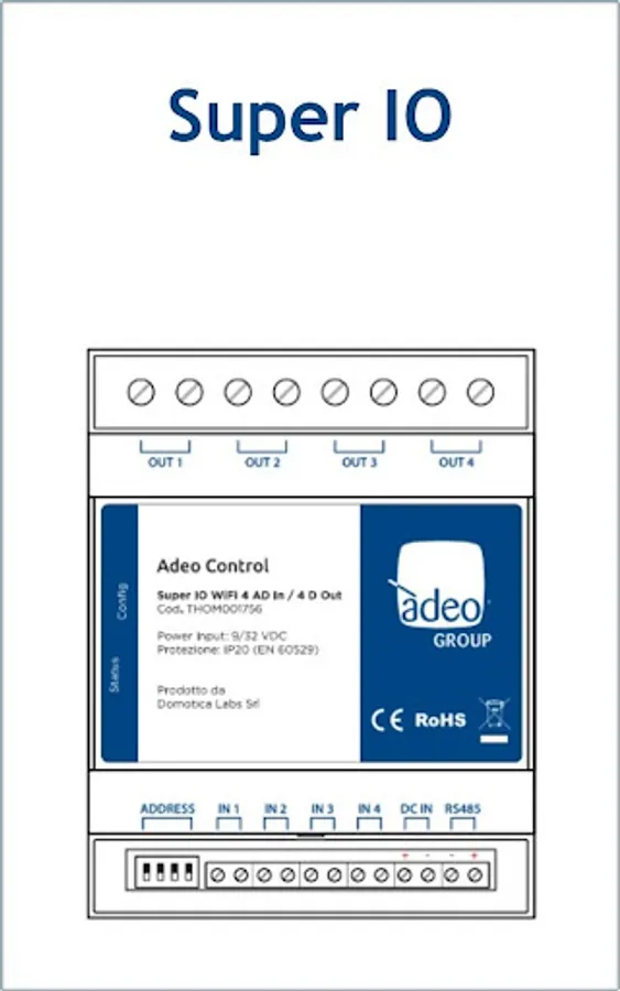 In fact it offers 4 configurable digital or analogue inputs and 4 power outputs completely integrated and manageable via wireless. The din bar module then offers the possibility of being installed on an electrical panel and easily controlled via WiFi.