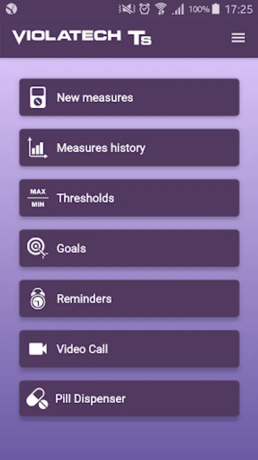 Enter Violatech TS App to see your goals and thresholds setup by your Caregiver, or to read your reminders and trends over time.