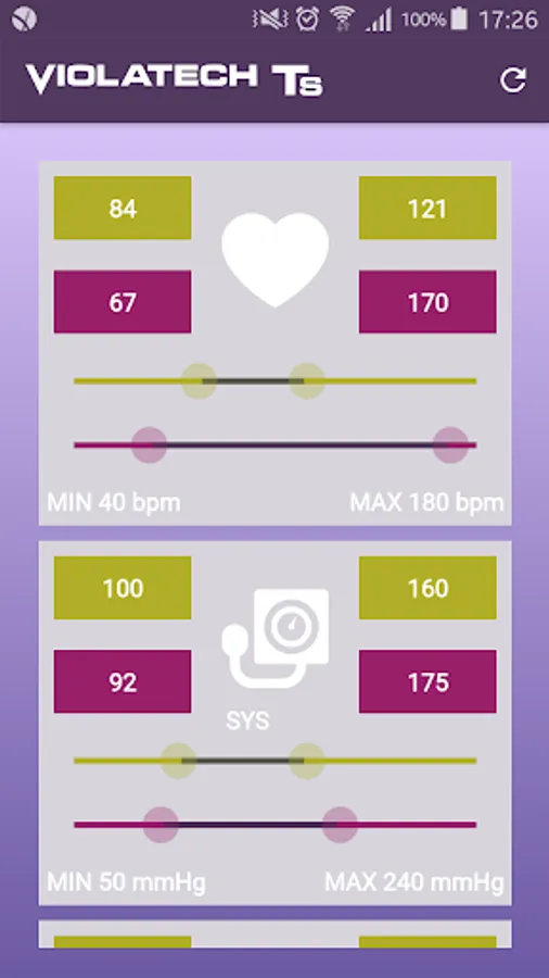 The Violatech TS App is a central part of the Connected Health platform and allows the user to perform self-assessment of his physiological abilities applicable to sports or daily activities, or to monitor vital parameters such as heart rate, blood pressure, blood sugar, weight, oxygen saturation etc. ... including acquisition of live streaming physiological parameters (EKG) making use of certified wireless wearable medical devices.
