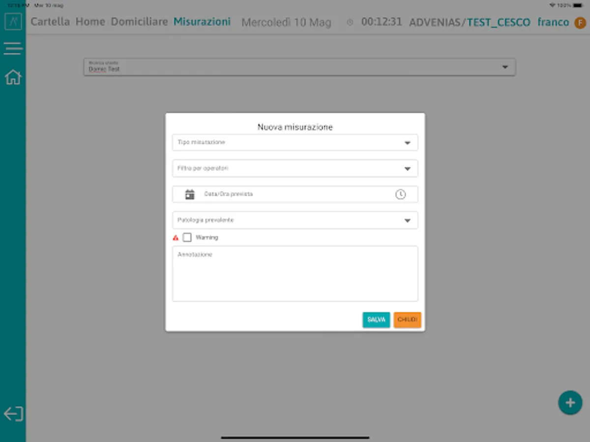 The app allows you to view the daily agenda, record the home and territorial activities carried out by the operators, administer VMD scales, detect vital parameters and measurements, check user diaries and send system communications.