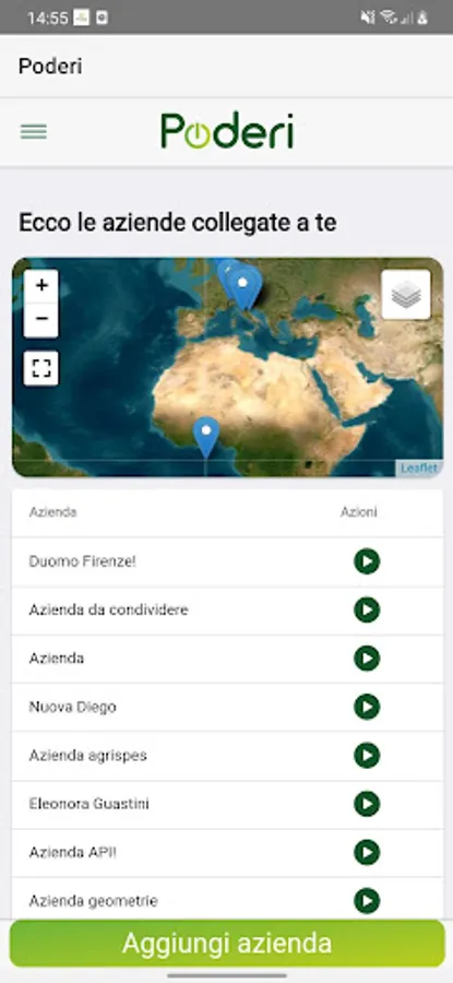 In particular, in the Poderi app it is possible to create the company and the polygons of the cultivated plots, assign the closest weather station among those available (Tuscany Region Open Data network) and define the specific characteristics of each plot (soil, crop, expected yield , etc').