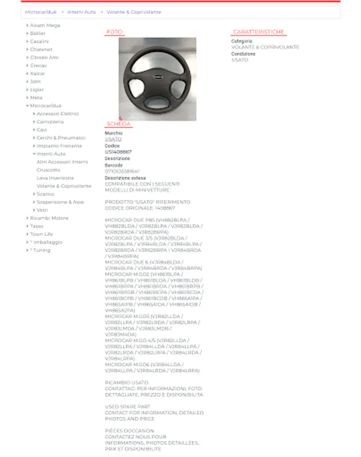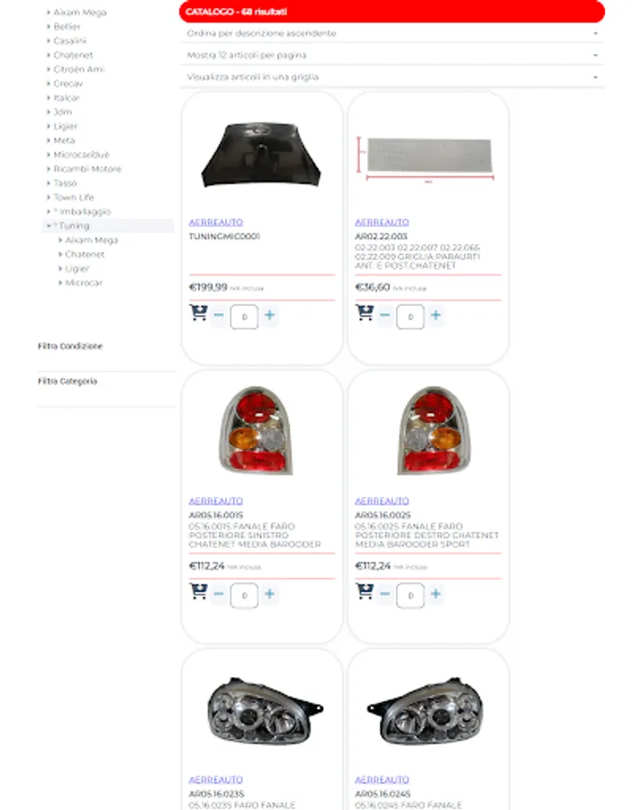 Aerreauto was born in 2007, our company has specialized for over a decade in the sale of original, non-original and used spare parts for all brands of mini cars such as AIXAM, LIGIER, MICROCAR, CASALINI, CHATENET, GRECAV, JDM, BELLIER, TASSO , ITALCAR, META, TWO.