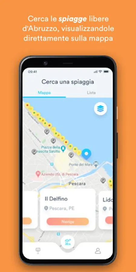 In the beaches where enabled by the municipality, you can also consult the availability of places and make a space reservation comfortably from the same app by logging in with your Google or Facebook account or by creating a new account within the application itself.