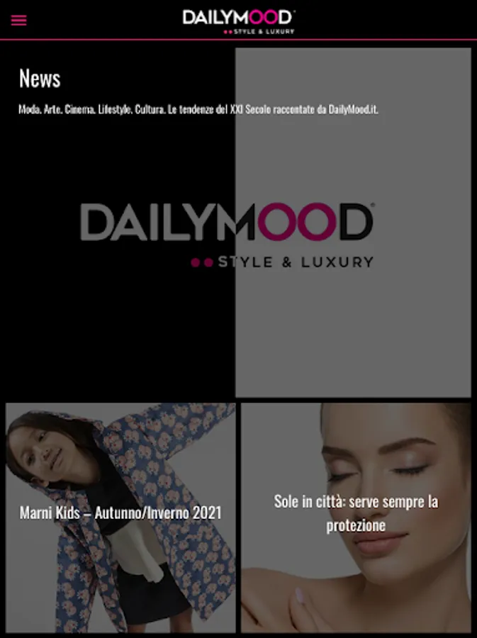 Dailymood is the leading magazine of Style & Luxury, Fashion, Beauty, Cinema, Events, On The Road, Travel, Resort & SPA and much more ... Browse the magazine free of charge, directly from APP; browse within the headings, you just need a click to be transported from the latest innovations in the automotive industry to the latest fashion trends, beauty and luxury.