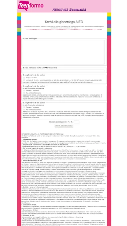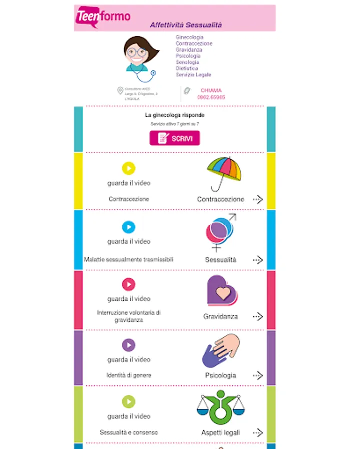 Teenformo is an app created by the AIED L'Aquila Consultory to spread the culture of affectivity and conscious sexuality among teenagers. Inside the APP you will find informative content on: