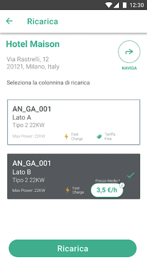 If the charging point you have chosen will be marked with the AIMove icon, with this APP you can also: