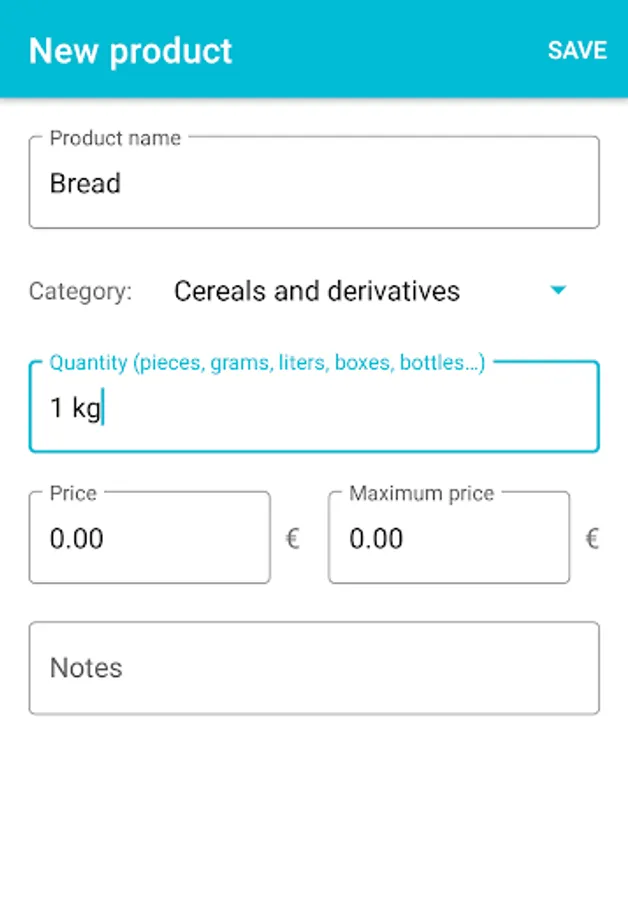 • Set quantity, price, maximum price (beyond which the product must not be purchased), notes.
