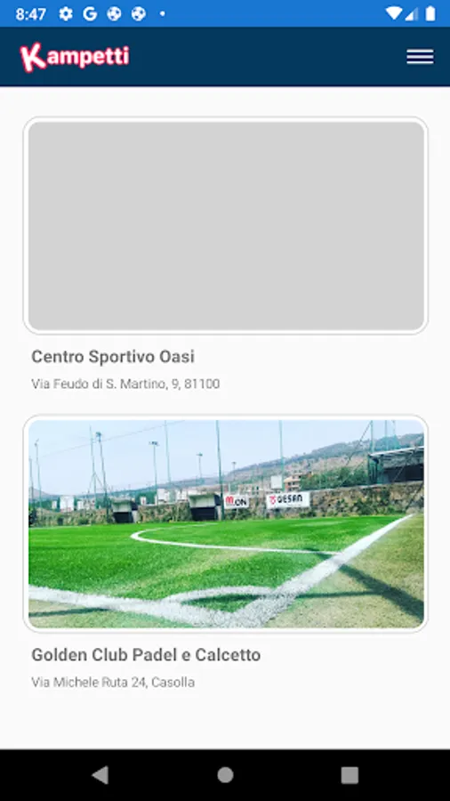 Booking a course has never been easier! With Kampetti you choose where to play, which sport and when, and in an instant the field is yours.