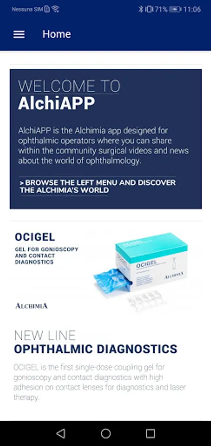 AlchiApp also offers full access to up-to-date content on Alchimia products through brochures, datasheets, surgical videos, publications and news about the ophthalmology world. The app also includes a function to get in touch with Alchimia's staff.