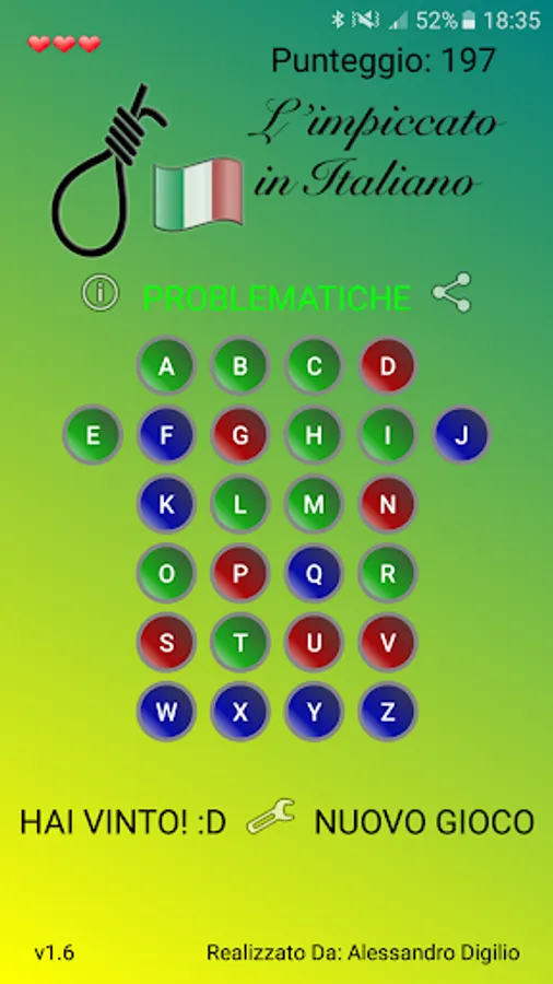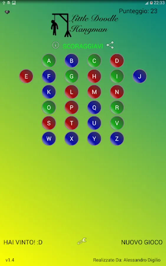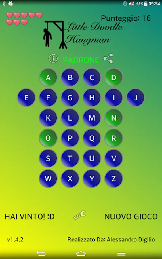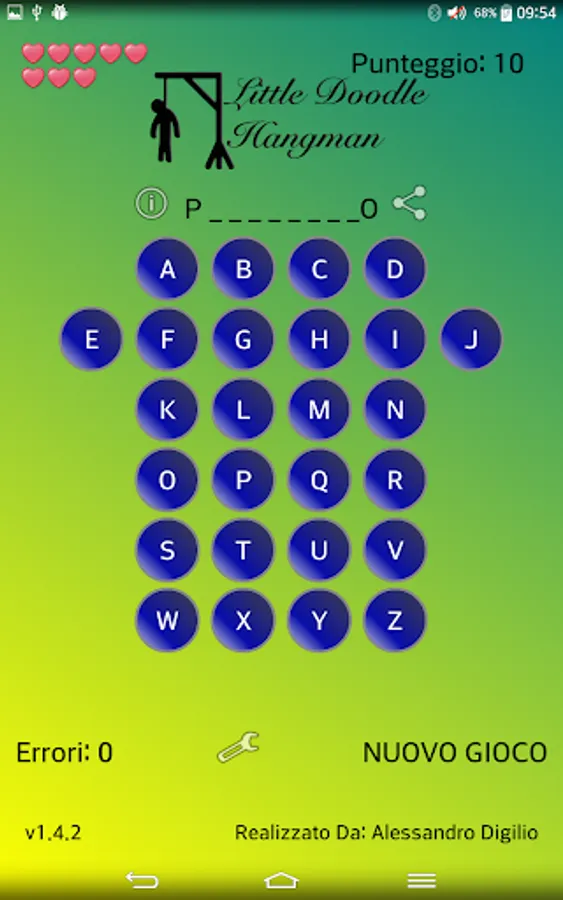 I am pleased to present, Hangman in Italian! (Formerly little doodle hangman) The classic hangman game on Android :) a game that aims to simplicity, with a myriad of words, well 99'080! All Italian! To play alone or with friends, on phone and tablet (dedicated interface to tablets coming soon, the game is still usable even on large devices)