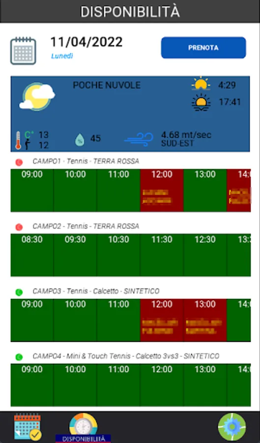 2) Possibility (only for registered users) to be able to book the desired field at the time of your choice among those available.