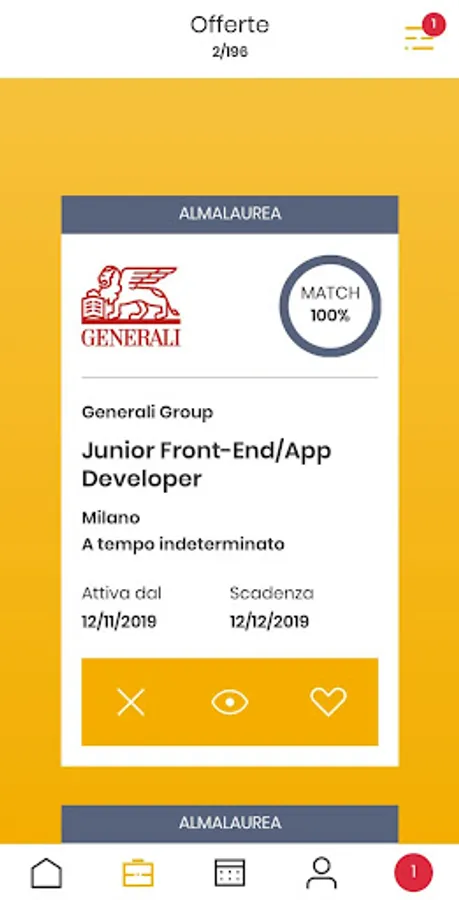 - save job offers and events that interest you with a swipe right or ignore them with a swipe left;