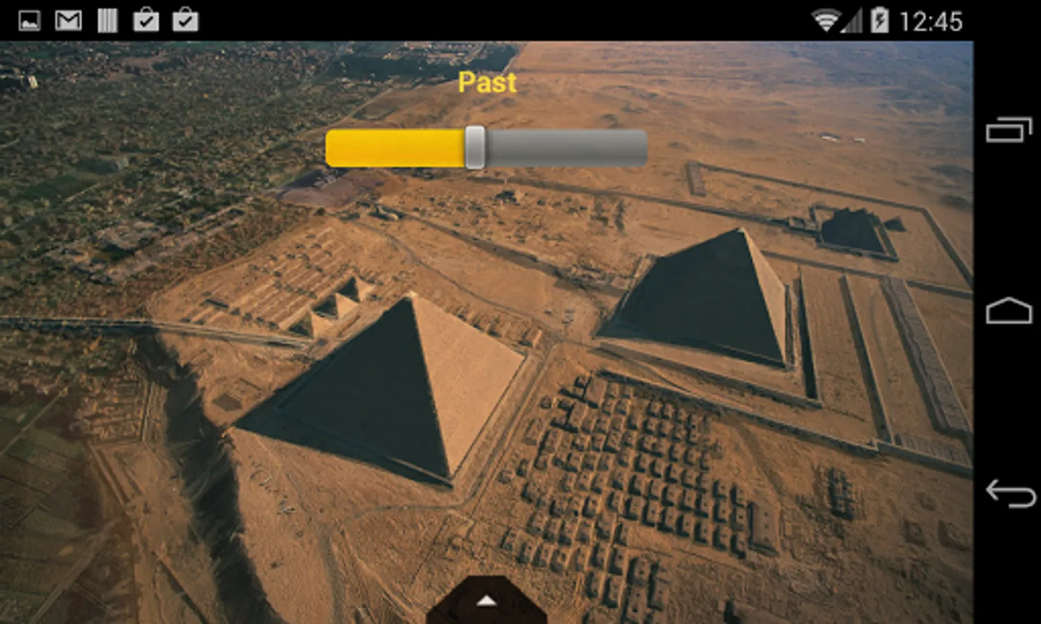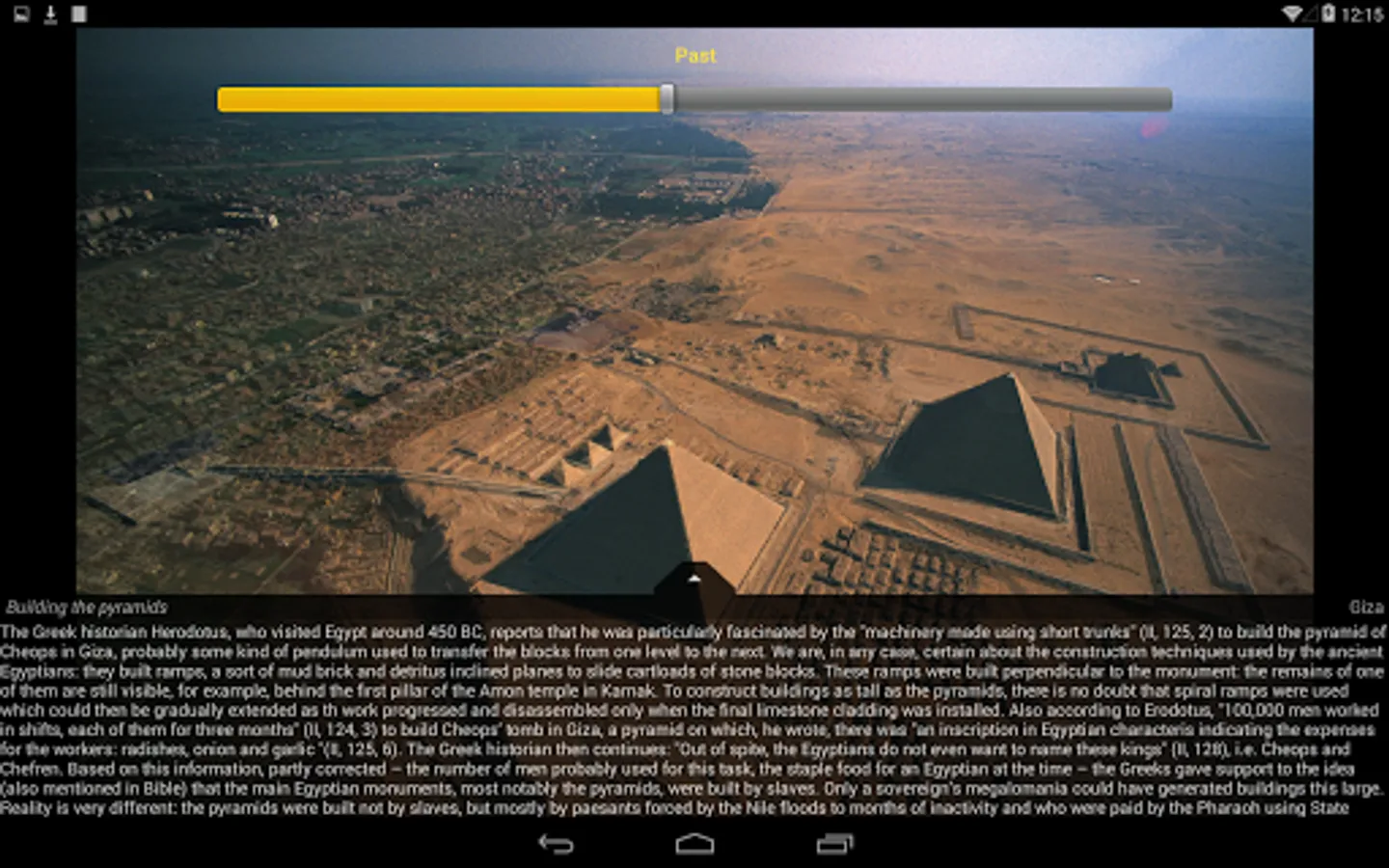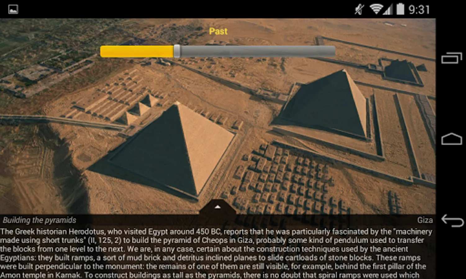 Time Machine: slide down to interactively fade in high resolution some reconstructions of the Pharaohs’ sites superimposed over the pictures of their current status.
