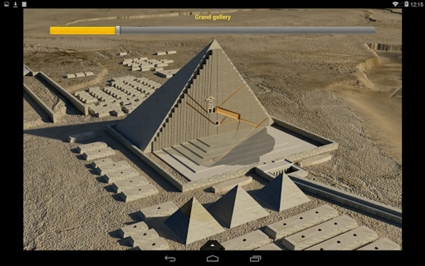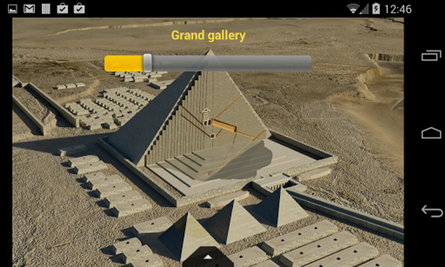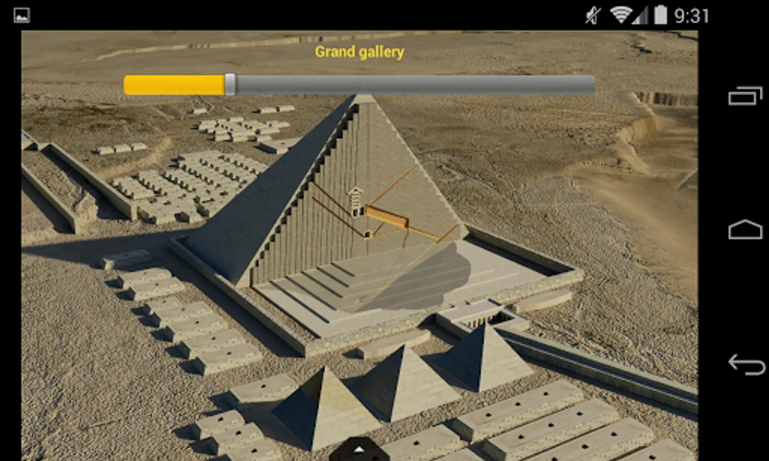 Interactive sections: slide up / down to interactively visualize the internal structure of the pyramids, or the construction phases of the great sphinx of Giza.
