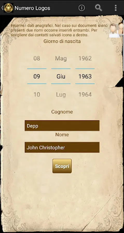 This software uses the ancient technique of Gematria to transform your personal data into numbers which describe your personality and future.